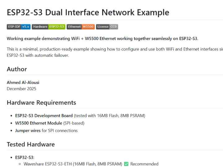 This project pushes the boundaries of communication reliability in robotics by combining the ESP32-S3 with the WIZnet W5500 for a dual-path network architecture.