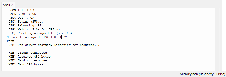 This example demonstrates Web Server on W55RP20 S2E via UART/SPI using MicroPython on a Raspberry Pi Pico (Master)