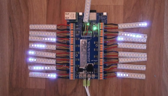 A. According to benchmark results from the technical community, stable control of approximately 32 Universes (about 16,000 LEDs) is reported. This is sufficient capacity to cover general households and medium-sized commercial facilities.