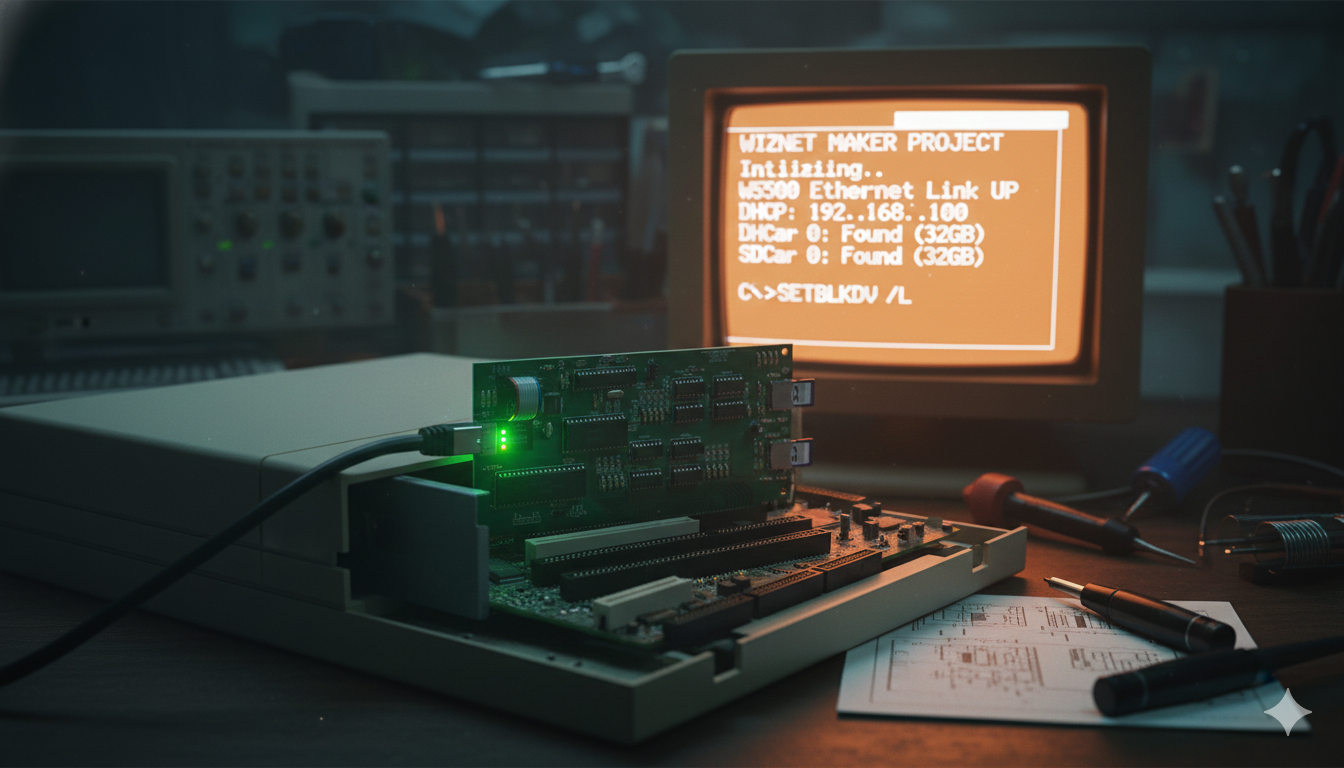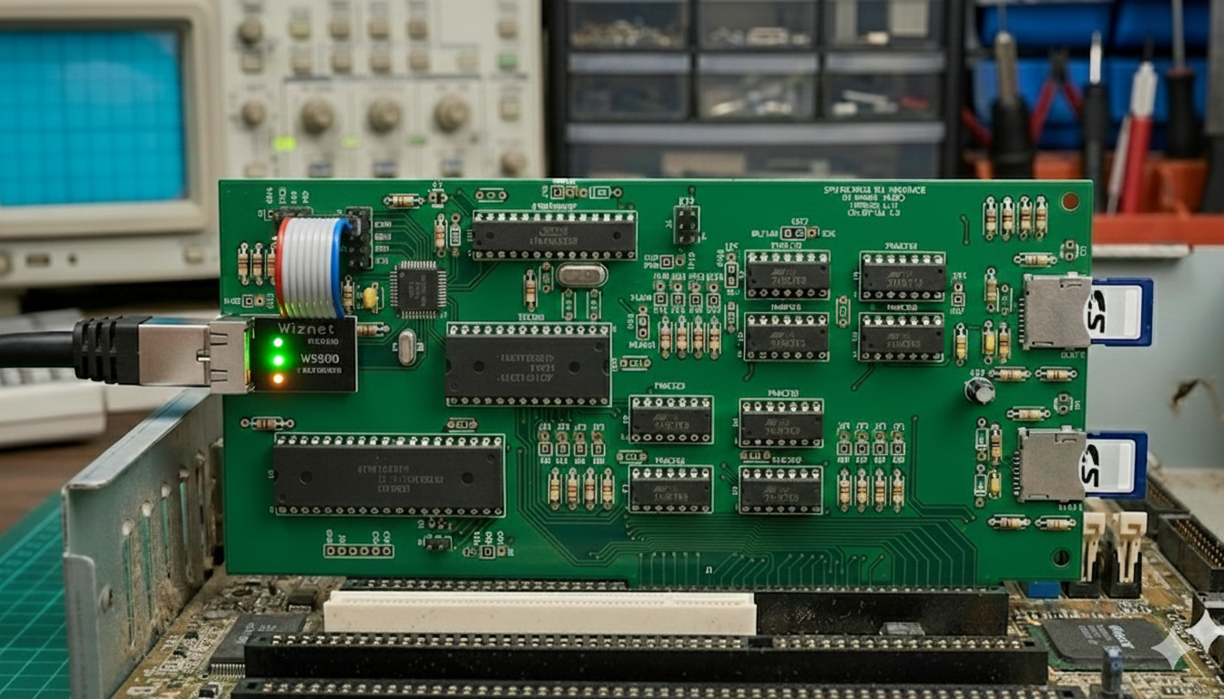 By integrating SD storage and WIZnet W5500 Ethernet on a single ISA card, the project demonstrates how modern components can meaningfully extend the usability of vintage PCs.