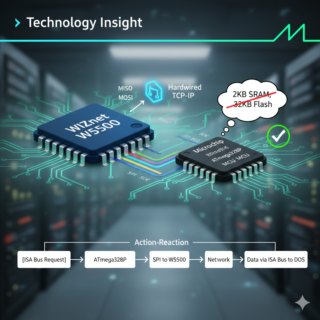Therefore, the W5500 is the most realistic and optimal solution for networking on a retro PC interface using an 8-bit MCU.