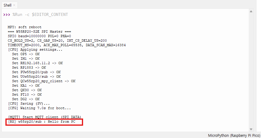 [RX] w55rp20/sub :Hello from PC.