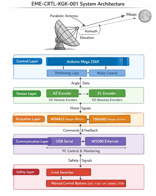EME-CRTL-KGK-001 is an open-source antenna rotator controller designed for
