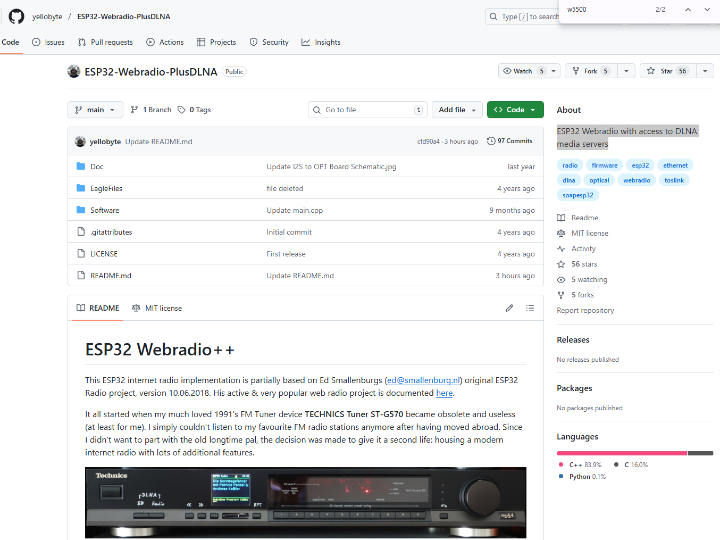 Combining internet radio, DLNA media browsing, and ESP32 with wired Ethernet is not common. The project stands out in the DIY audio community.