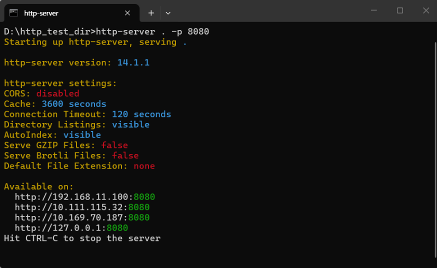 To test the HTTP Client example, you need to run an HTTP server on your PC.