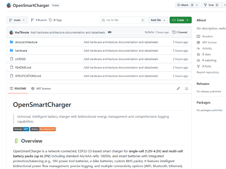 OpenSmartCharger Universal, intelligent battery charger with bidirectional energy management and comprehensive logging capabilities COMPONENTS PROJECT DESCRIPTION Documents Comments Write