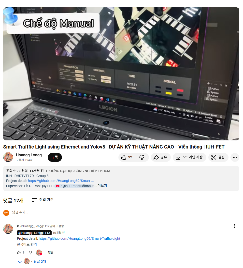 영상의 조회수뿐 아니라, 댓글에서도 시스템 완성도·활용성·구현 과정에 대한 긍정적인 반응이 이어지고 있습니다.