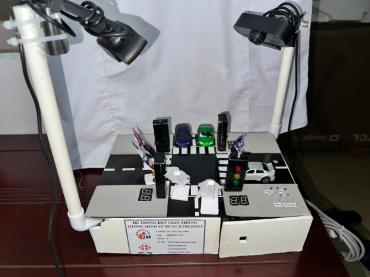 A smart traffic light system using Ethernet to connect PC software with the traffic light controller.