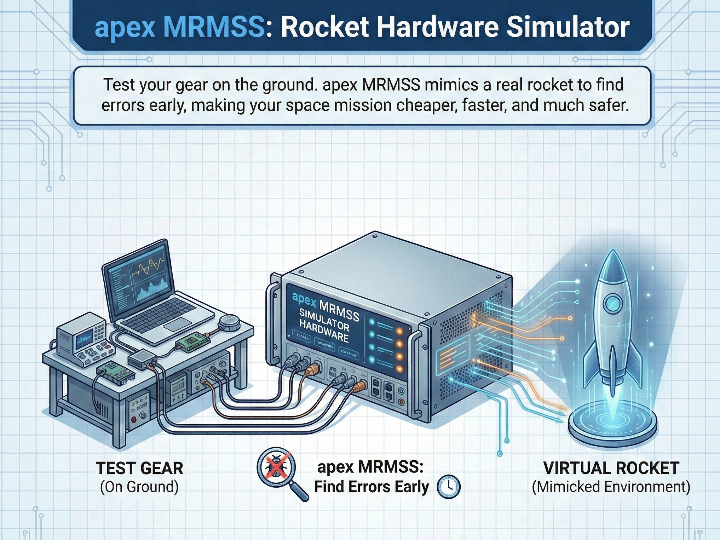 apex MRMSS is a smart simulator that ensures rocket experiments work perfectly. It bridges your lab and space, making every mission safer, cheaper, and easier.