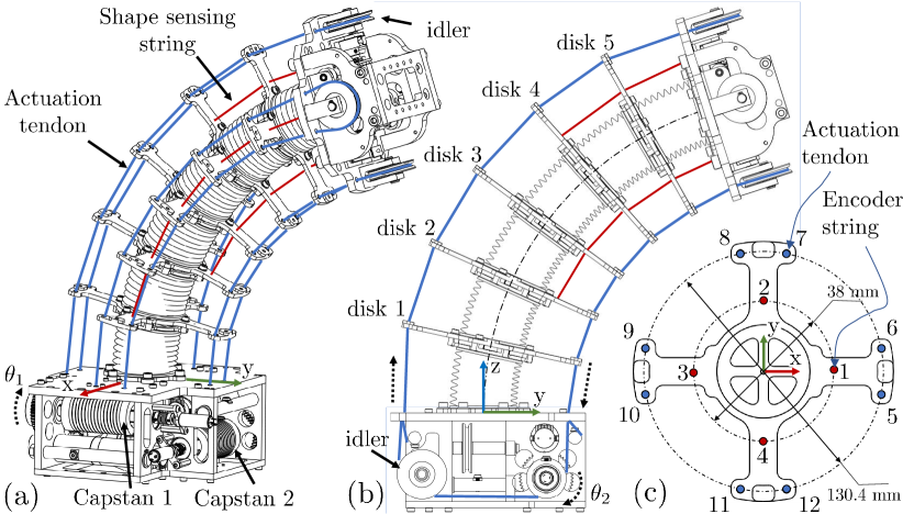 스트링 인코더 기반 감지 (String Encoder-based Sensing): 로봇 내부에 여러 개의 줄(String)을 배치하여, 로봇이 구부러지거나 비틀릴 때 줄의 길이가 변하는 것을 측정합니다. 마그네틱 인코더가 이 미세한 길이 변화를 감지하여 로봇의 형상을 역추적합니다.