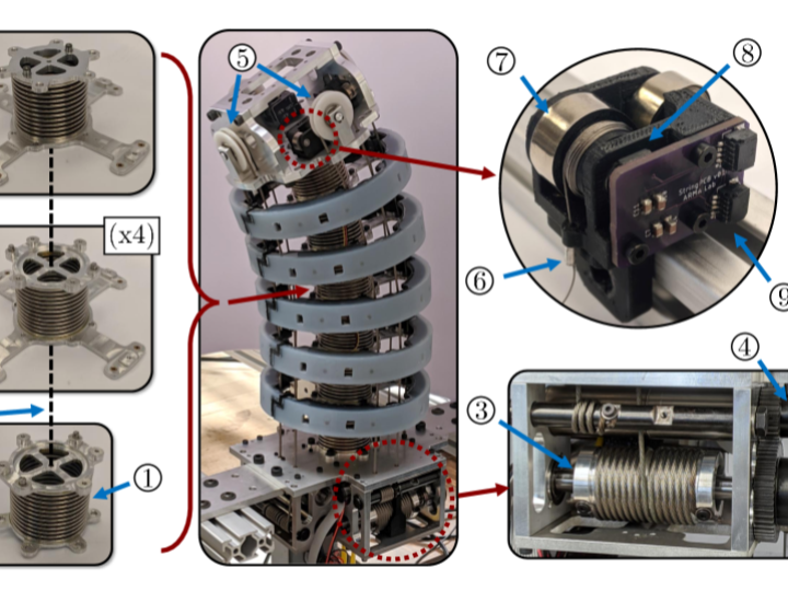 String Encoder-based Sensing: The robot uses multiple strings running through its body. As the robot bends or twists, the length of these strings changes. Magnetic encoders measure these minute changes to calculate the robot's shape.