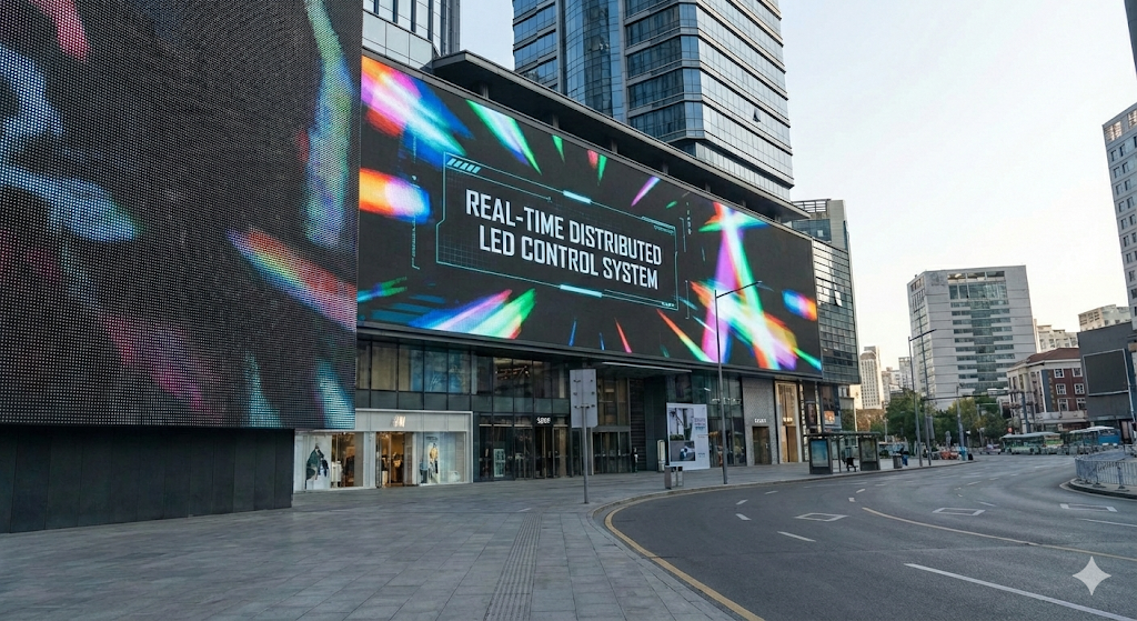 네트워크 동기화 프로토콜: 분산된 패널 간 동기화를 위해 다층 동기화 메커니즘을 구현했습니다. UDP 멀티캐스트를 통한 비디오 데이터 배포와 함께 RS485 기반의 전역 동기화 펄스를 사용하여 모든 패널이 동시에 프레임 버퍼를 교체하도록 제어합니다. 이러한 하이브리드 동기화 방식은 대규모 LED 월에서의 시각적 아티팩트를 방지하고 일관된 영상 출력을 보장합니다.