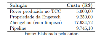 | 솔루션 | 비용 (브라질 헤알R$) | 한화 | 청소 기능 |