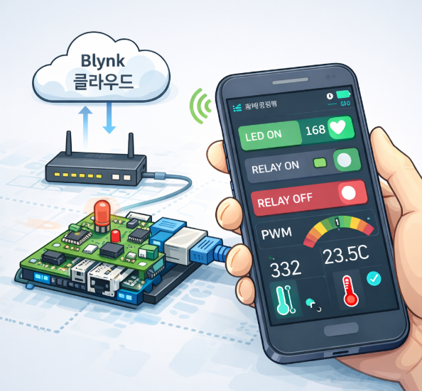 앱 기반 원격 제어: Blynk 앱 UI(버튼/슬라이더)로 LED·릴레이 제어