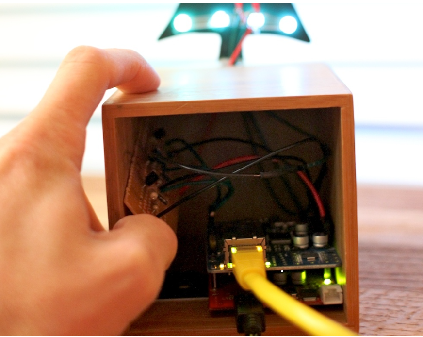 A small, Ethernet-connected Christmas tree that visually participates in a global CheerLights network.
