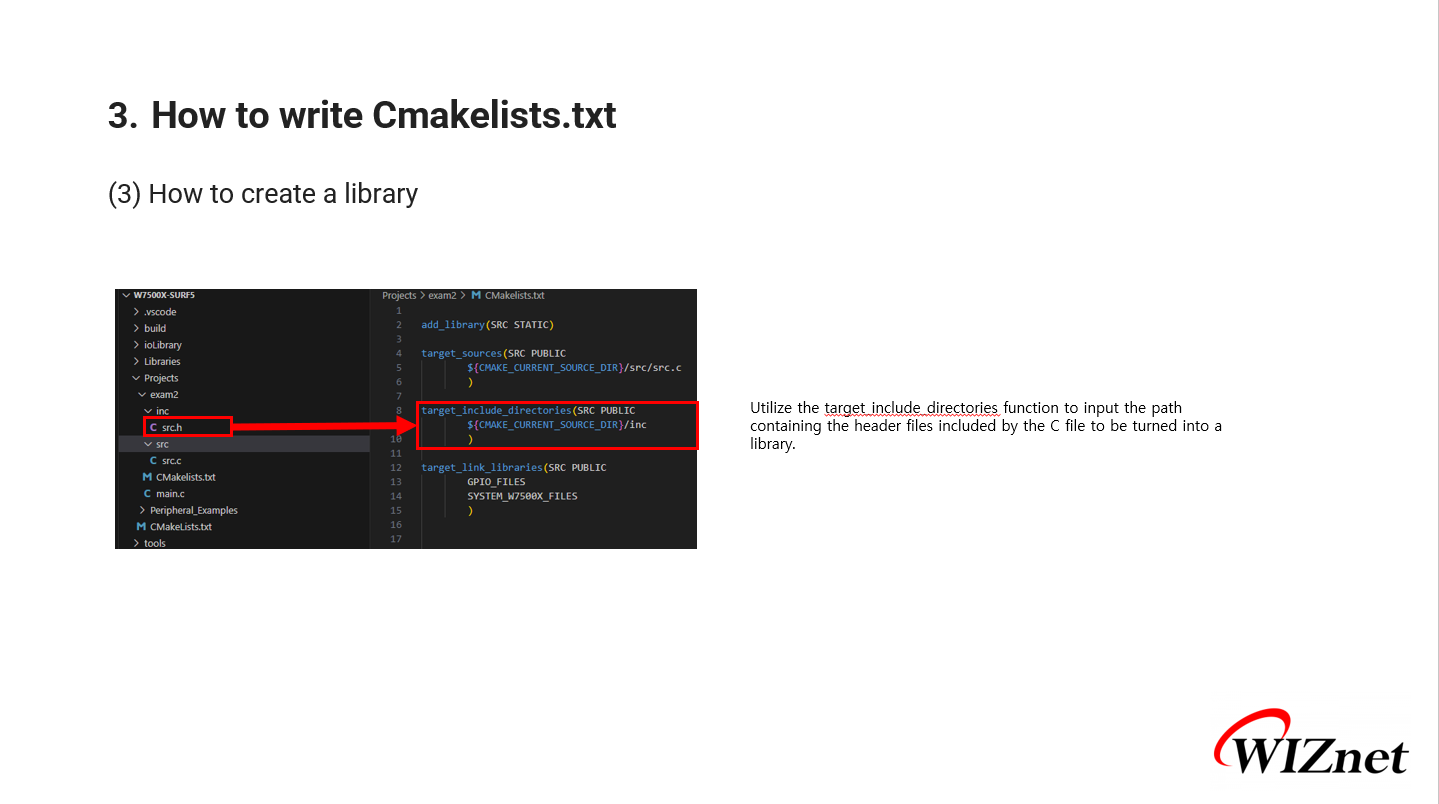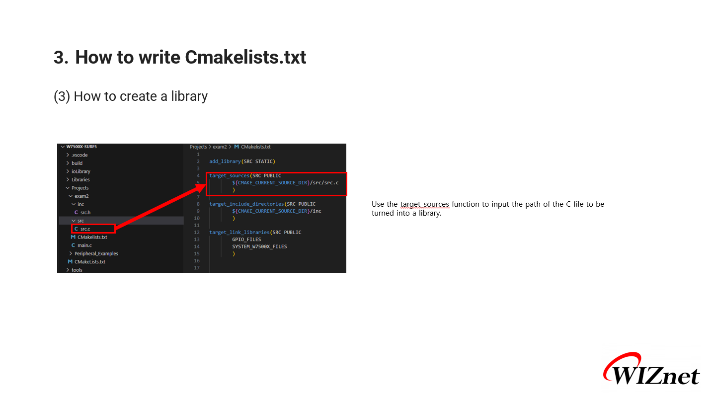 How to Write CMakelists for Using WIZnet Chips in VS Code How to Write CMakelists for Using WIZnet Chips in VS Code COMPONENTS Hardware components WIZnet - W7500 x 1 Software Apps and online services microsoft - VS Code x 1 PROJECT DESCRIPTION Documents Comments Write