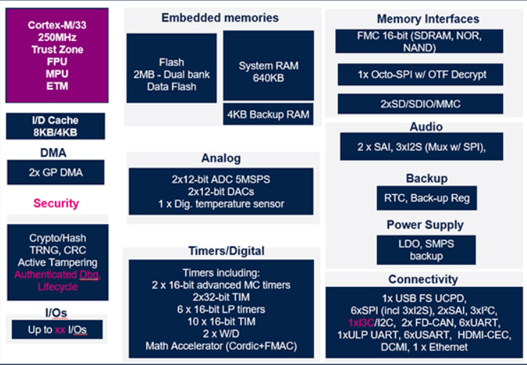 | Core | 250MHz Arm Cortex-M33 with TrustZone |
