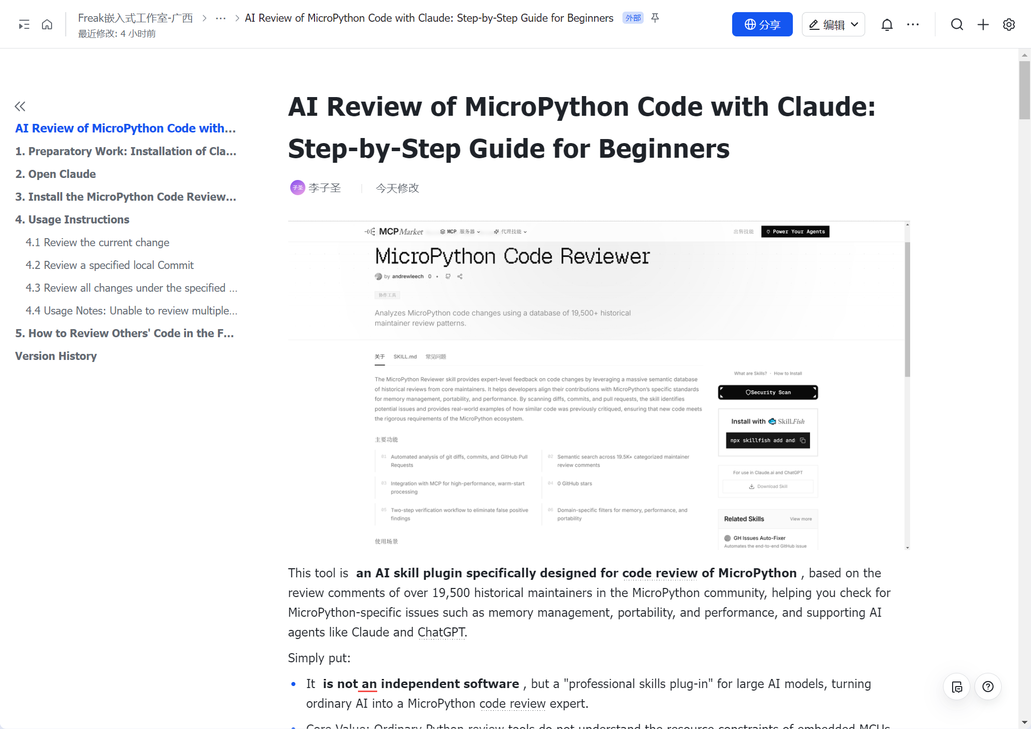 No more manual grind! This article shares a zero-barrier, ready-to-implement AI code review solution: use Anthropic's official Claude Code CLI tool with the dedicated "MicroPython Code Reviewer" AI skill plugin, turning general-purpose LLMs into MicroPython-savvy professional code review experts.