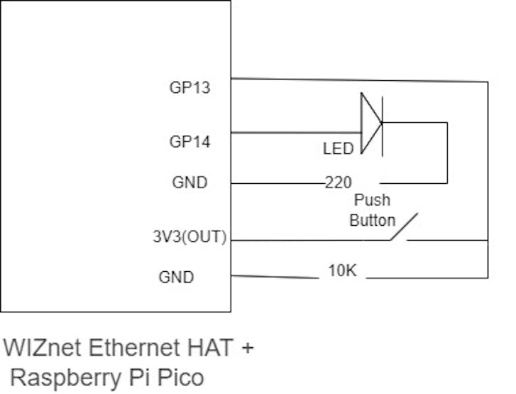 4. Connect One side of Push Button to GP13 of pico and other side to 3V3. Add a Pull Down resistor of 10Kohm(Refer above image).