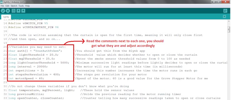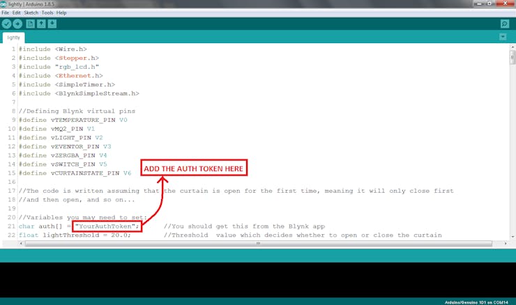 Now that you have the authentication code, what you need to do is to download the Lightly: Blynk Code and add the authentication token.