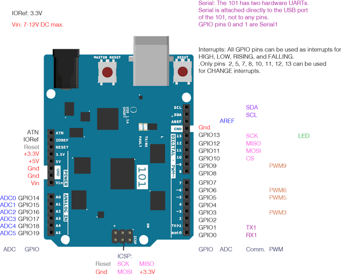 Note: You can also power the Arduino 101 from the Vin pin by using a power supply but I would say not to do it this way at the moment. You can do it later on once you know everything is working as it should.