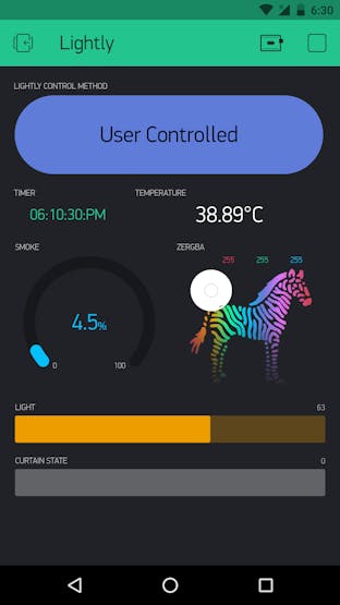 Now open the Lightly project in the Blynk app, and you will see that the widgets are getting updated:
