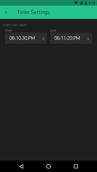 The Timer widget is used for setting the time. Users can set any time for opening or closing the curtains as shown in the screenshot below: