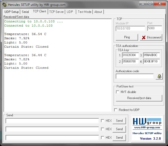 - Hercules from here. We will use this as a TCP Client to see if the device is connected and working properly