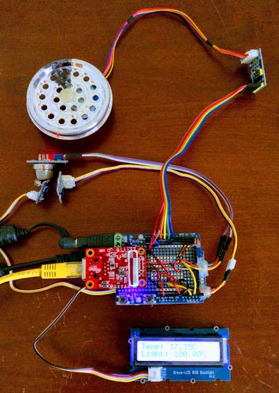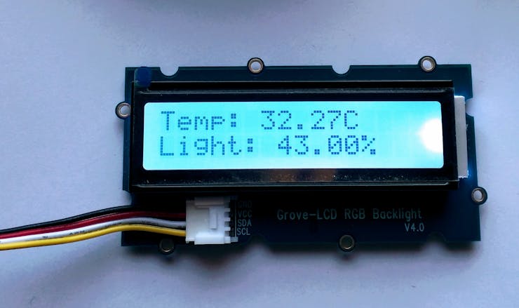 - The RGB LCD Display doesn't work unless the Grove Base Shield's switch is at 5v (and the temperature sensor won't work unless it is at 3.3v, so you need to think about this).
