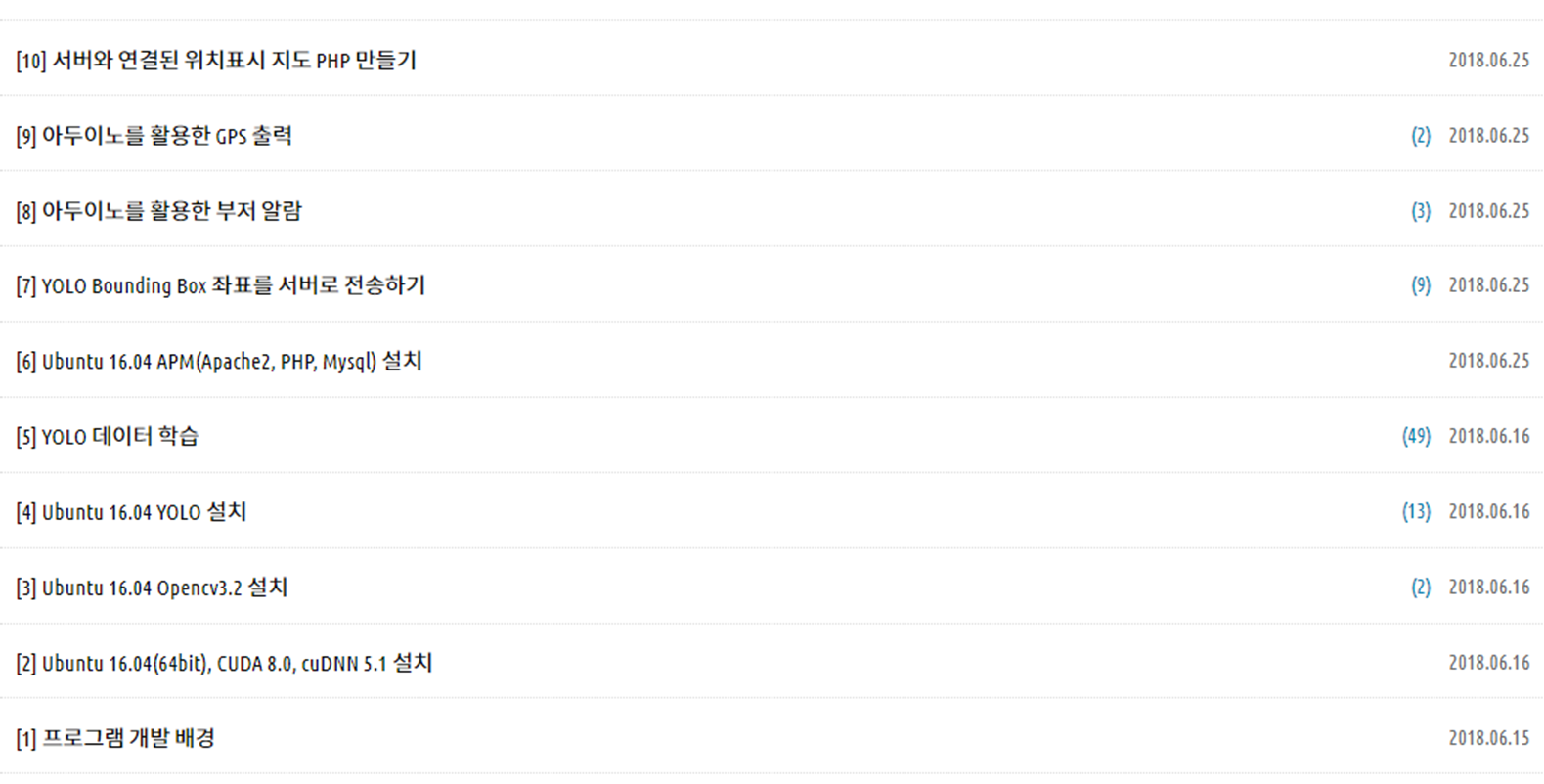 Details such as Ubuntu installation, YOLO installation settings, and Yolo data learning were written in detail.