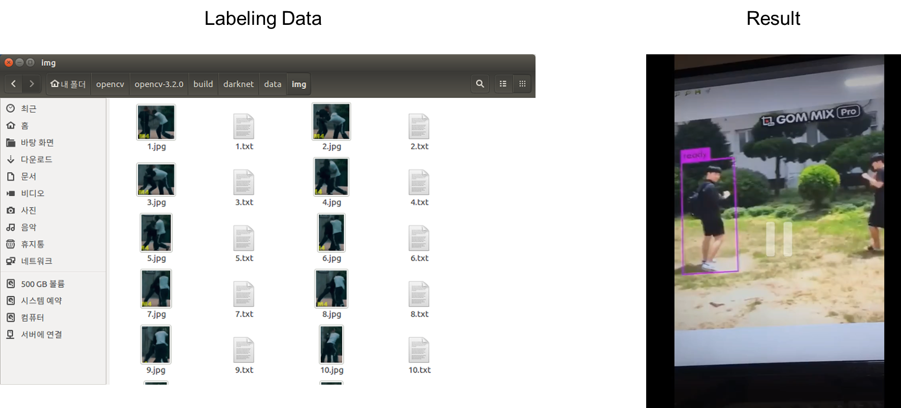 If you create and learn violence-related learning data on the left, you can derive inference results like the image on the right.