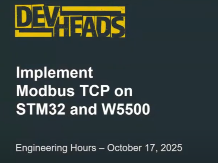 Rewatch our session with IoT expert Umesh Lokhande to learn how to implement MODBUS TCP Server communication using WIZnet W5500 and STM32 MCU.