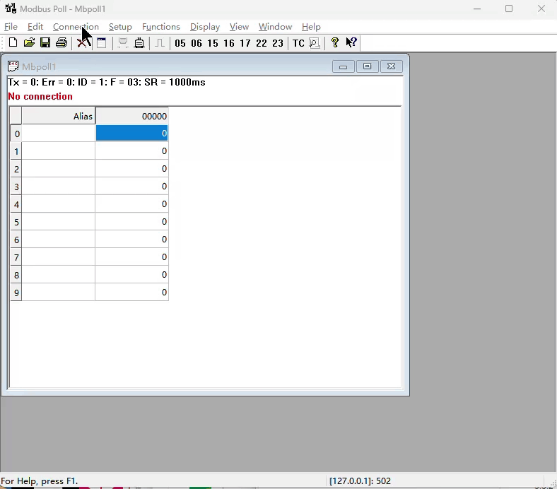 (2) Use Modbus Poll to connect to W5500 for communication.