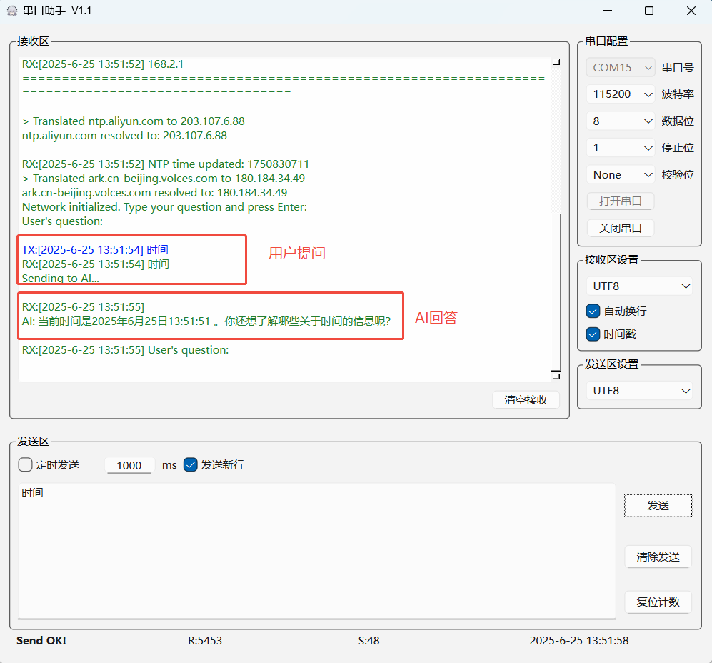 Network communication processing: Communicates with the NTP server using the UDP protocol, implemented through the socket API of the WIZnet chip.
