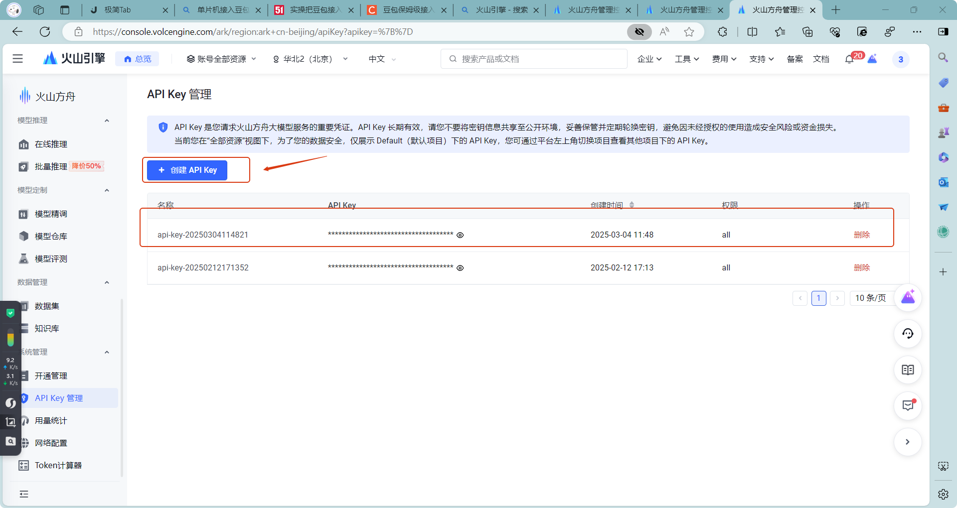 Go to API Key Management , click 【Create API Key】, fill in the name, and create the API Key for later use.
