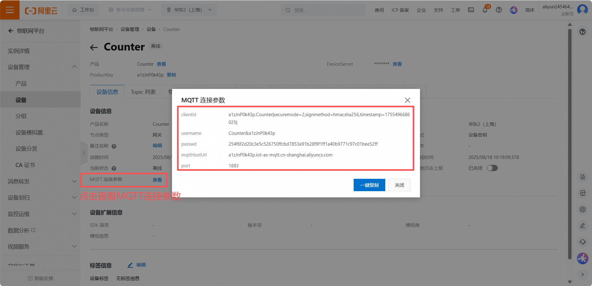 .clientid = "a1zJnP0k43p.Counter|securemode=2,signmethod=hmacsha256,timestamp=1755050066623|", /*Define the client ID*/
