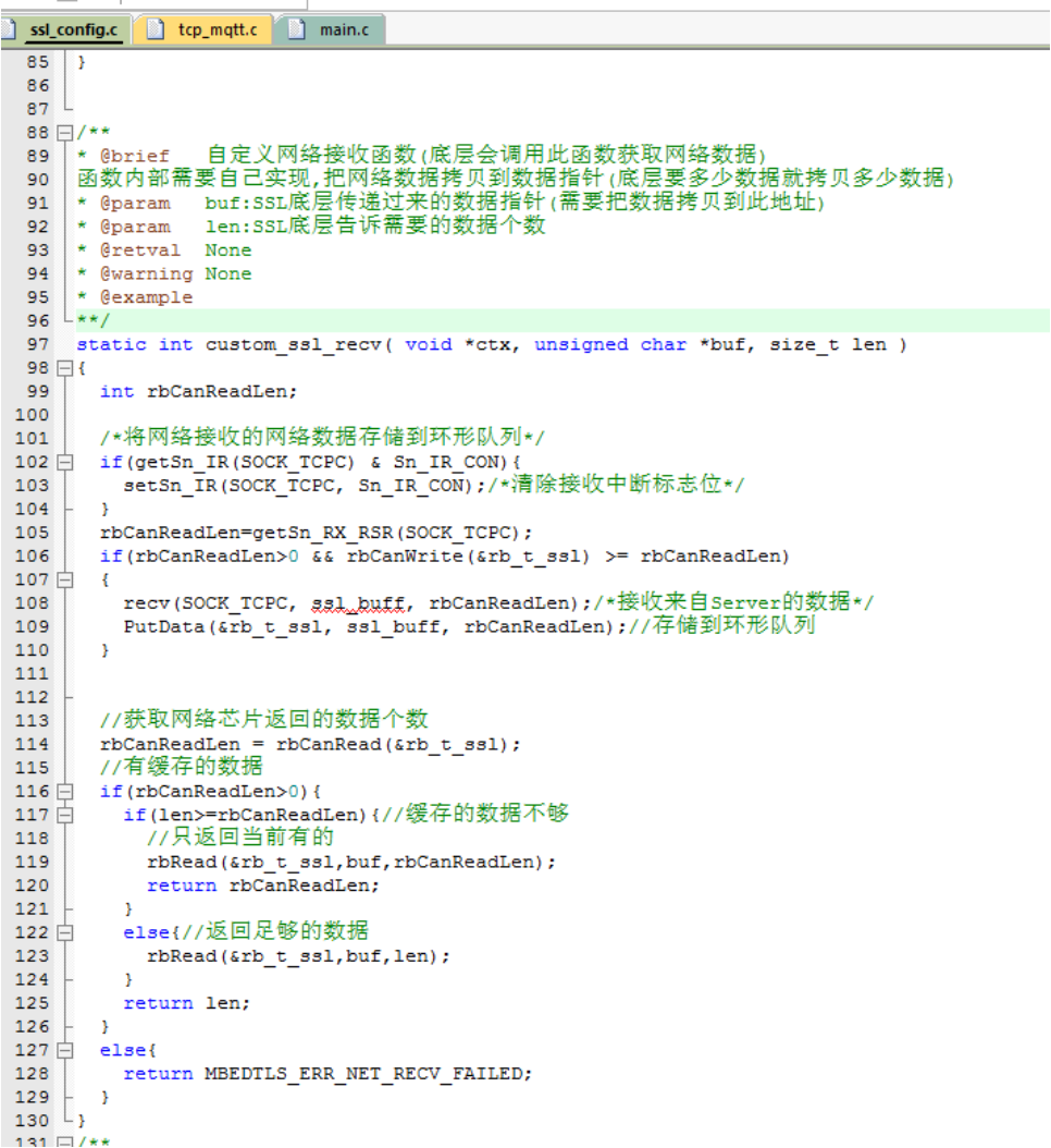 Network receive processing function (mbedtls automatically calls this function at its underlying level)