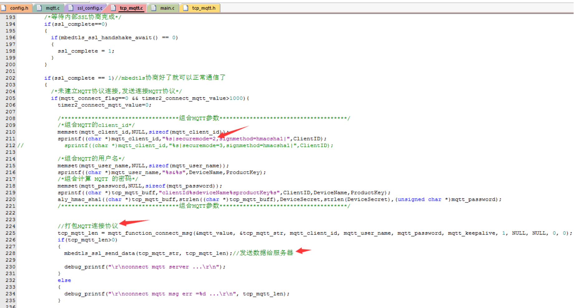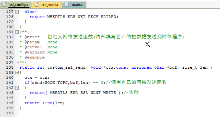 After the SSL negotiation is complete, the data we send needs to call the functions provided by mbedtls.