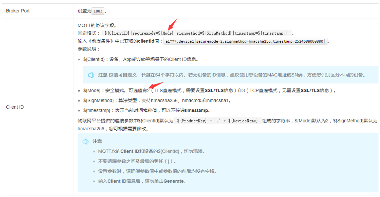 Please note that Alibaba Cloud stipulates that if using an SSL connection, the securemode parameter of the MQTT client_id must be set to 2.