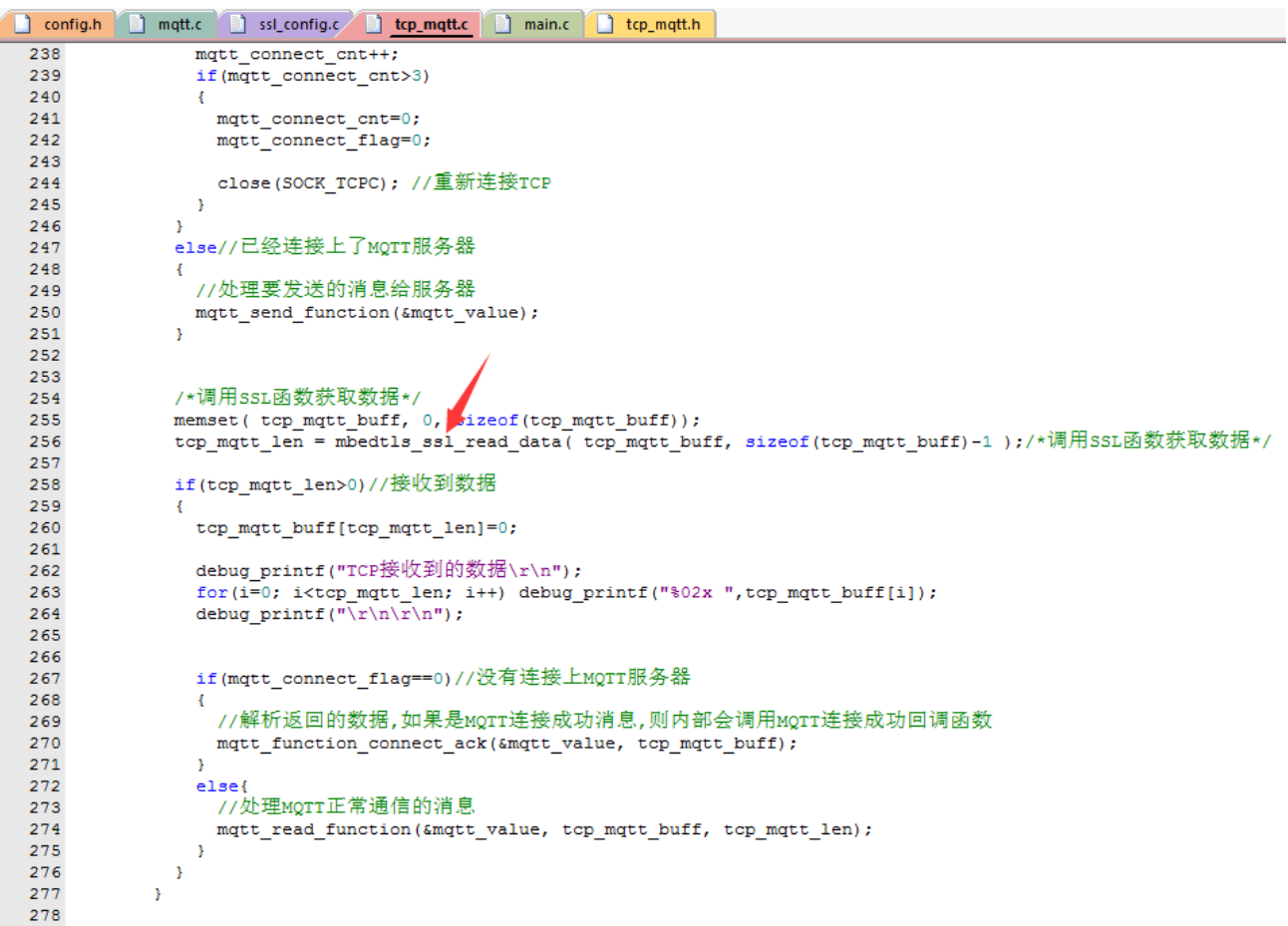 Similarly, we also need to use the functions provided by mbedtls to retrieve the data received via TCP.