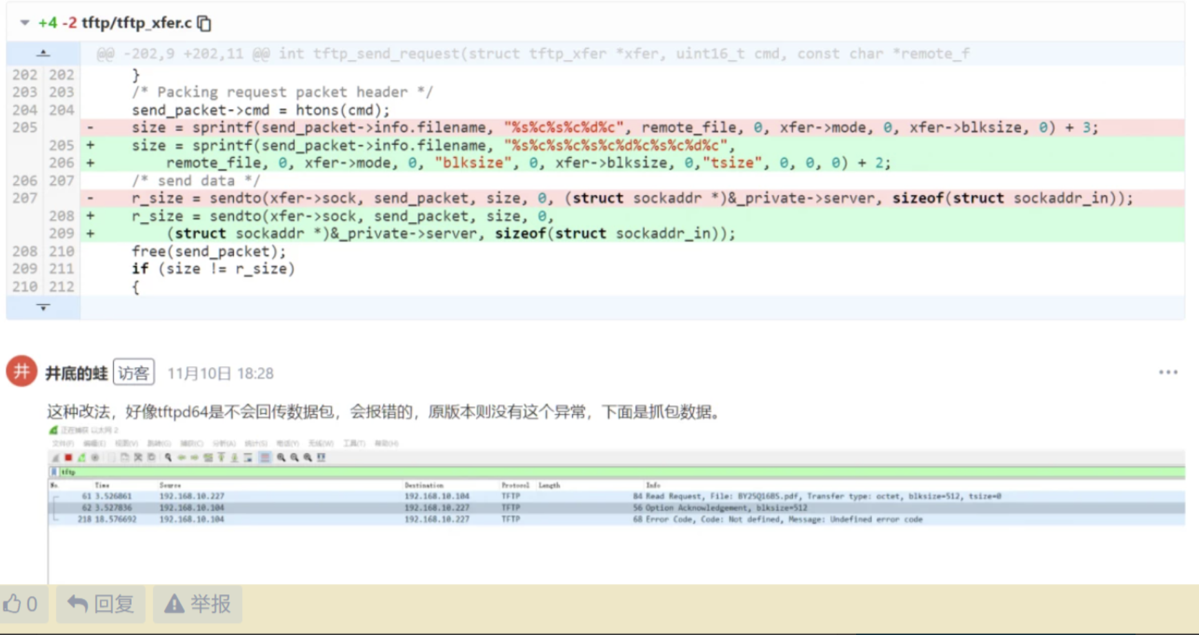 Later, I saw this sentence in the Gitee source code and learned that the latest TFTP code has a bug.