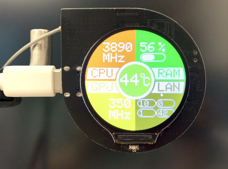 RP2040 acts as an MCU, after obtaining the pc runtime status parameters from wizfi360, it performs data processing and displays the content on the screen.