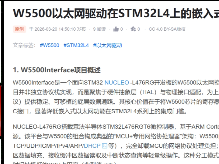 Original source: CSDN article “W5500以太网驱动在STM32L4上的嵌入式集成指南,” published March 20, 2026.