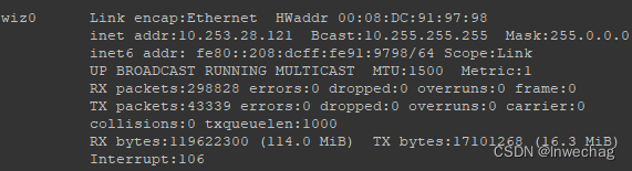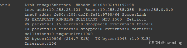 udhcpc -i wiz0After setting the IP, use ifconfig to view the network card