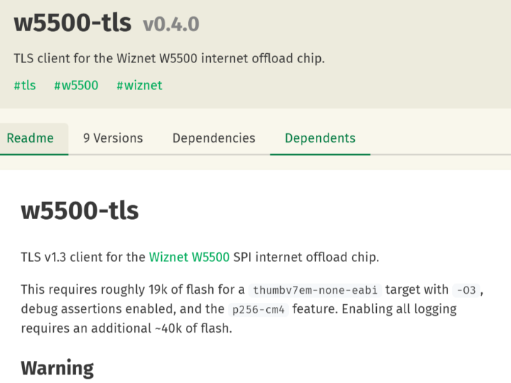 TLS v1.3 client for the Wiznet W5500 SPI internet offload chip.