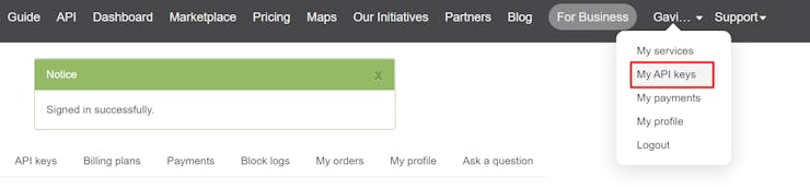 Create New Account and login the website. you could find your API keys.