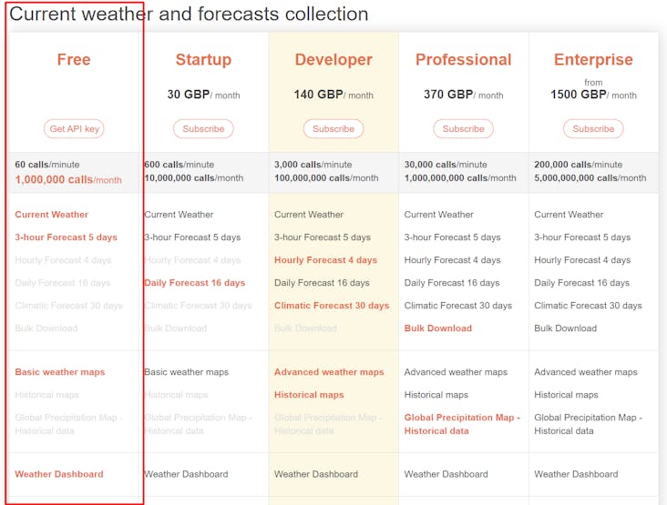 The openweather has variety of APIs for querying. The following figure is an introduction to some APIs.