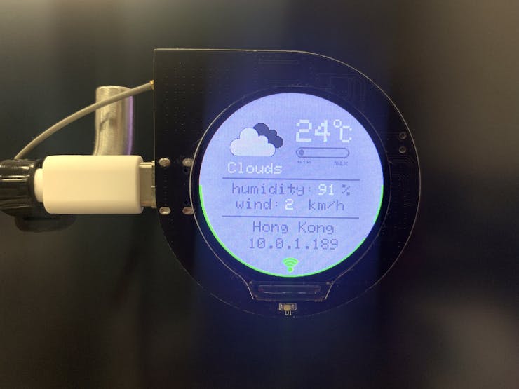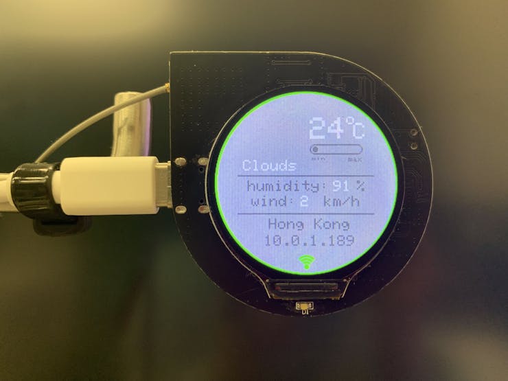 }Because of the limitation of the free account, and the change of the weather information will not be too fast, so I set to reacquire the data every 5 minutes, and there is a countdown indicator on the outer edge of the screen.