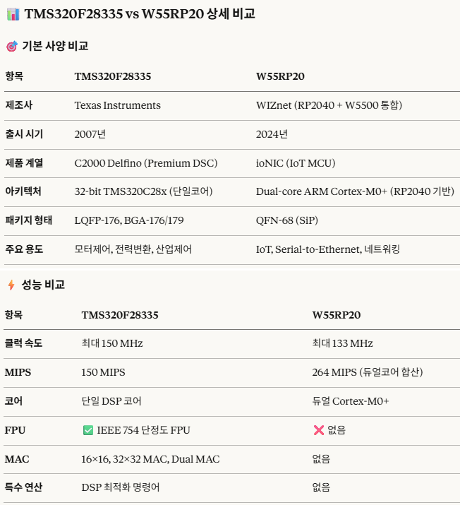 연결 편의성: F28335와 같은 DSP는 핀 수가 제한적일 수 있습니다. 병렬(Parallel) 방식의 이더넷 칩은 수십 개의 핀을 사용해야 하지만, W5500은 SPI 인터페이스를 사용하여 최소한의 핀(4~6개)으로 연결이 가능합니다.