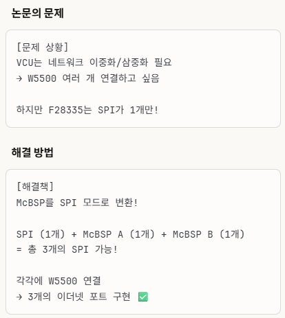 이 연구는 고가의 이더넷 전용 프로세서를 사용하지 않고도 기존의 범용 DSP(F28335)와 하드웨어 스택 칩(W5500)을 조합해 경제적이고 안정적인 차량용 이더넷 솔루션을 제시했다는 점에 의의가 있습니다.